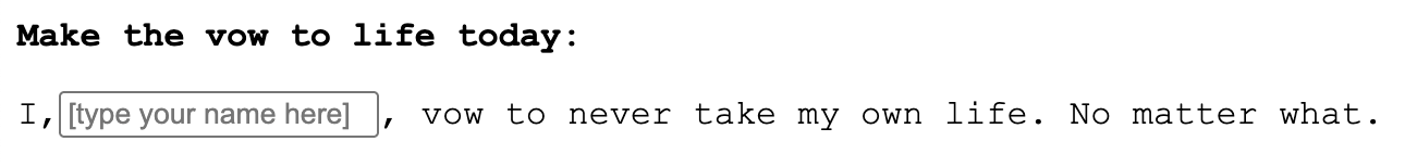 So far, as of when I’m writing this, 33 people have anonymously made the vow. That’s 33 silent victories of life over death. Only God knows how many more people are yet to be touched by this project, but even if this site only helped one person choose life over death, then all the pain and suffering I’ve gone through would not have been for waste. I’ve been blessed to work on many meaningful projects in my life, but this one is by far the most meaningful project I’ve ever worked on. And it would never have been possible, had I not first suffered.